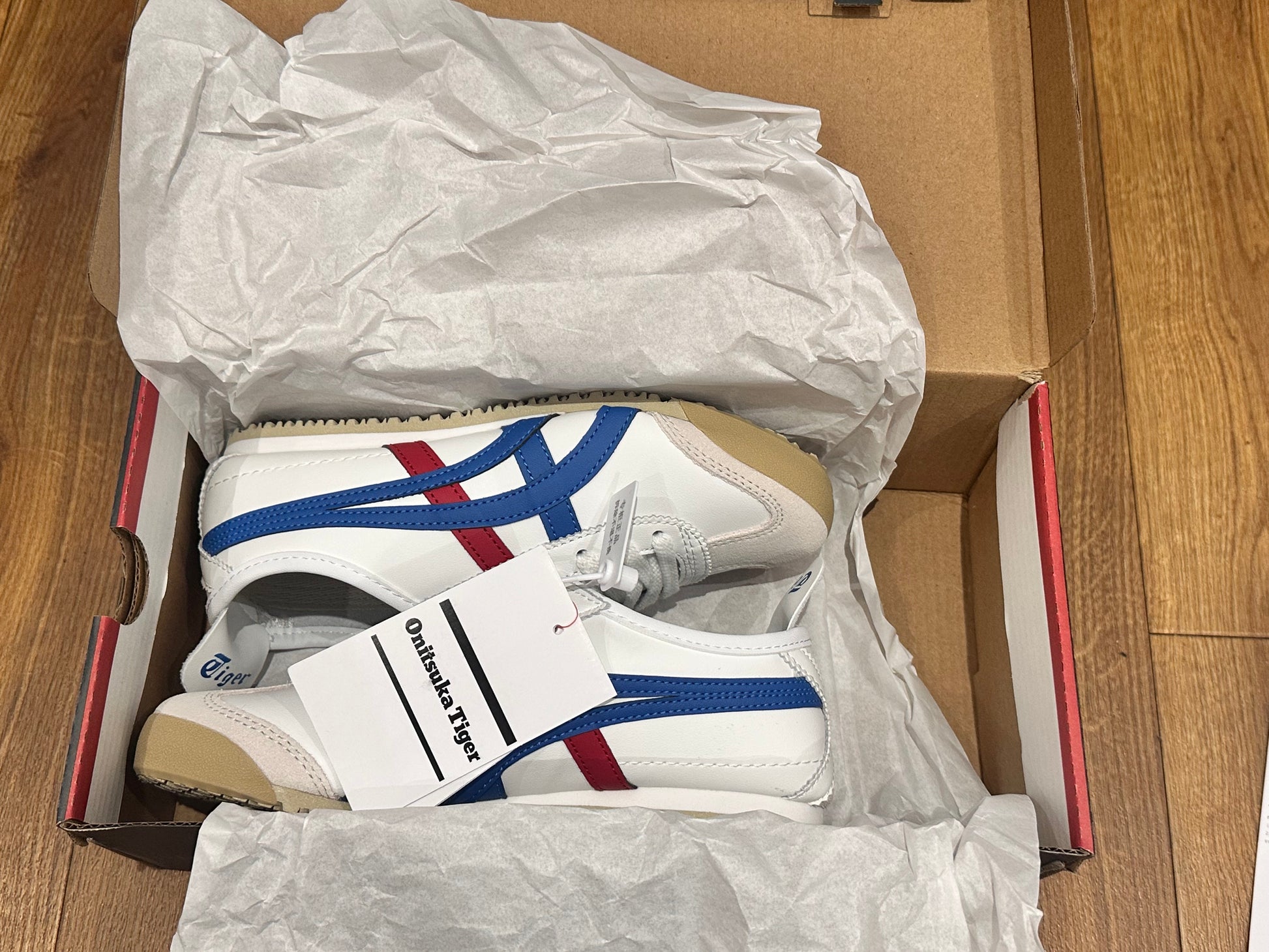 Brand new Onitsuka Tiger - Mexico 66, Size 4 or 5.5, Blue and Red Stripes.